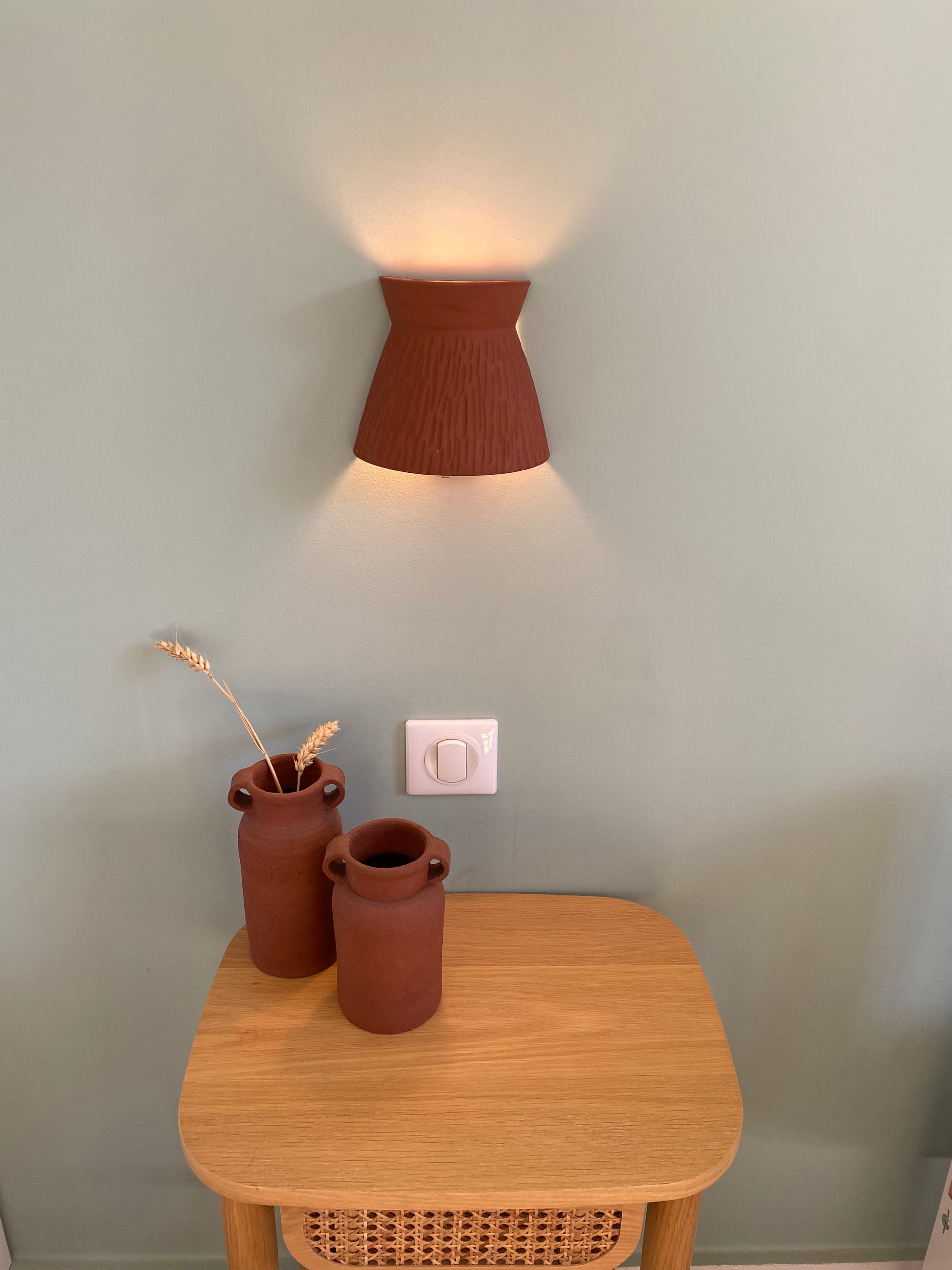 Cette applique en grès mêle lignes organiques et courbes contemporaines, pour offrir une lumière douce et enveloppante. Elle trouve naturellement sa place dans un salon, une chambre, un couloir ou encore une cuisine, où elle crée une atmosphère chaleureuse et apaisante.