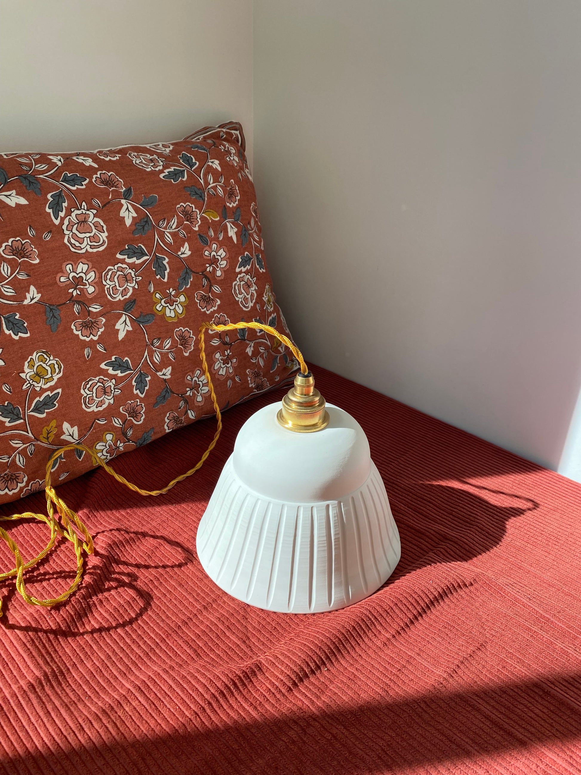 Chaque luminaire que je crée est le fruit d’un travail entièrement fait main, dans mon atelier niché sur les hauteurs de Meudon, en région parisienne. C’est là que je façonne, tourne, émaille et assemble chaque pièce, avec patience et passion.