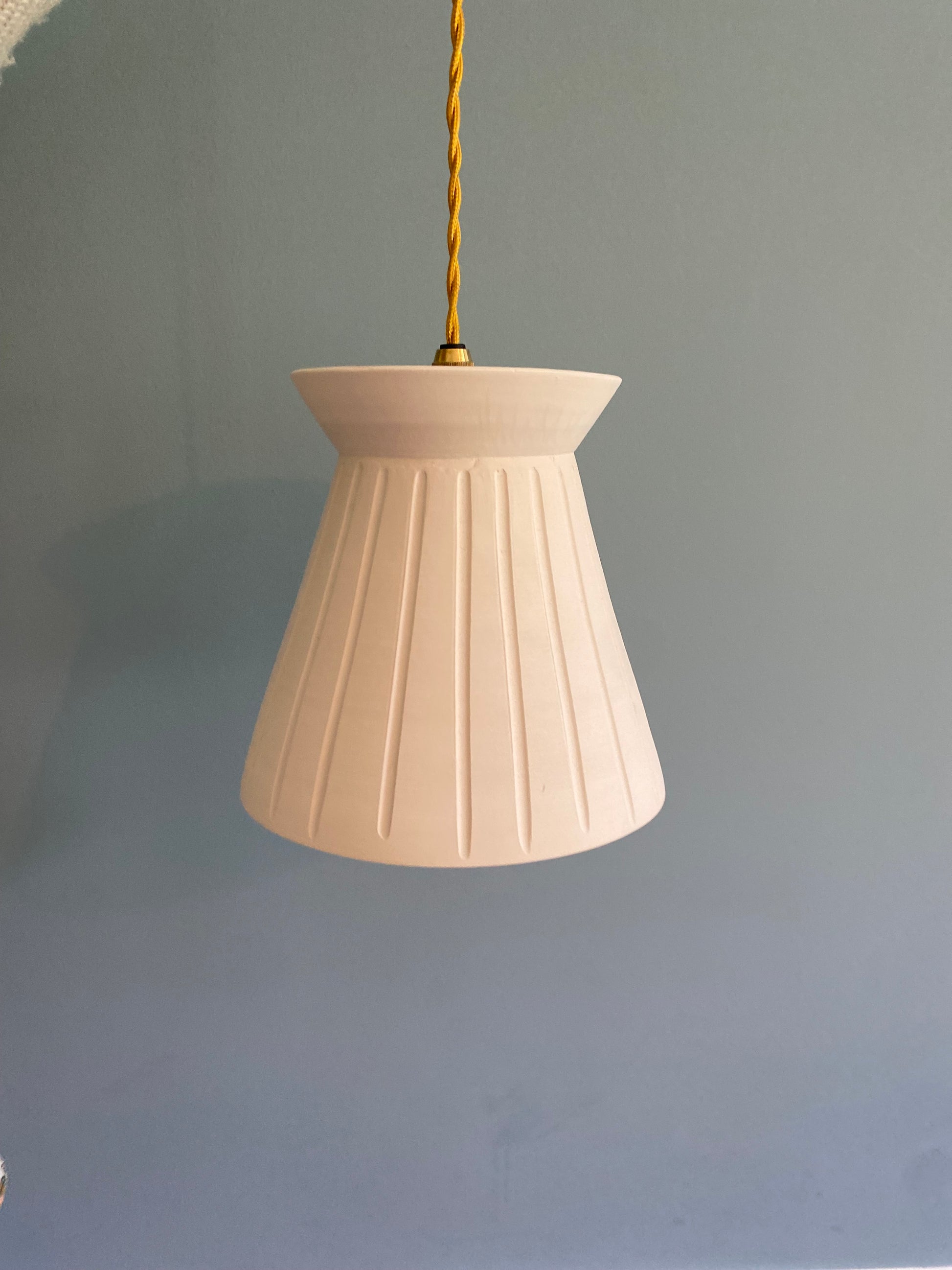 Cette suspension en grès mêle lignes organiques et courbes contemporaines, pour offrir une lumière douce et enveloppante. Elle trouve naturellement sa place dans un salon, une chambre, un couloir ou encore une cuisine, où elle crée une atmosphère chaleureuse et apaisante.