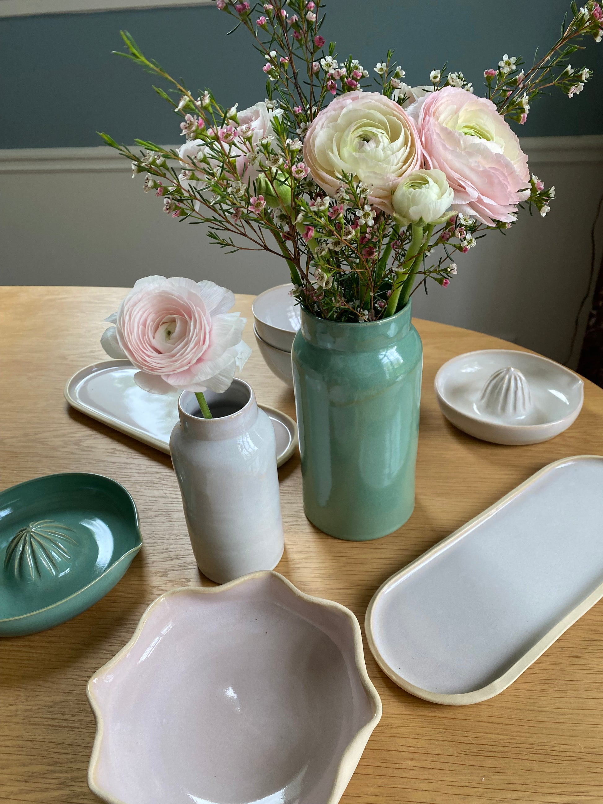 Chaque pièce est unique, et réalisée à la main, il peut donc y avoir de très légères variations de formes, de tailles et de couleur.